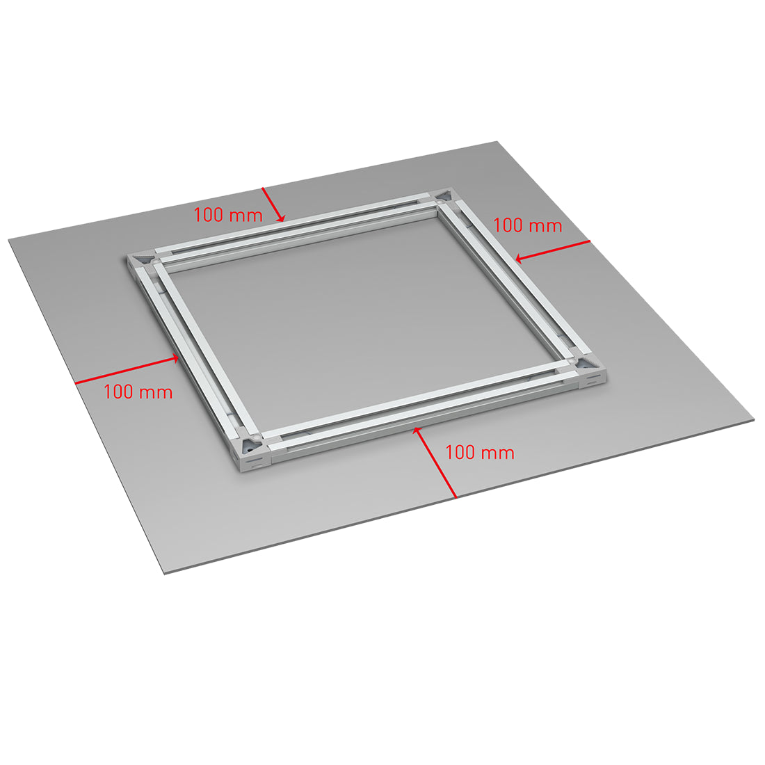 Tip: Voor het bevestigen van het Back Frame Hanging System raadt Artiteq aan, om de profielen op 100 mm afstand van elke zijde van het bedrukte paneel te plaatsen.