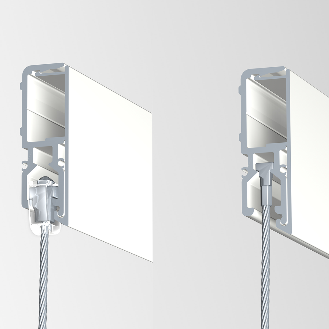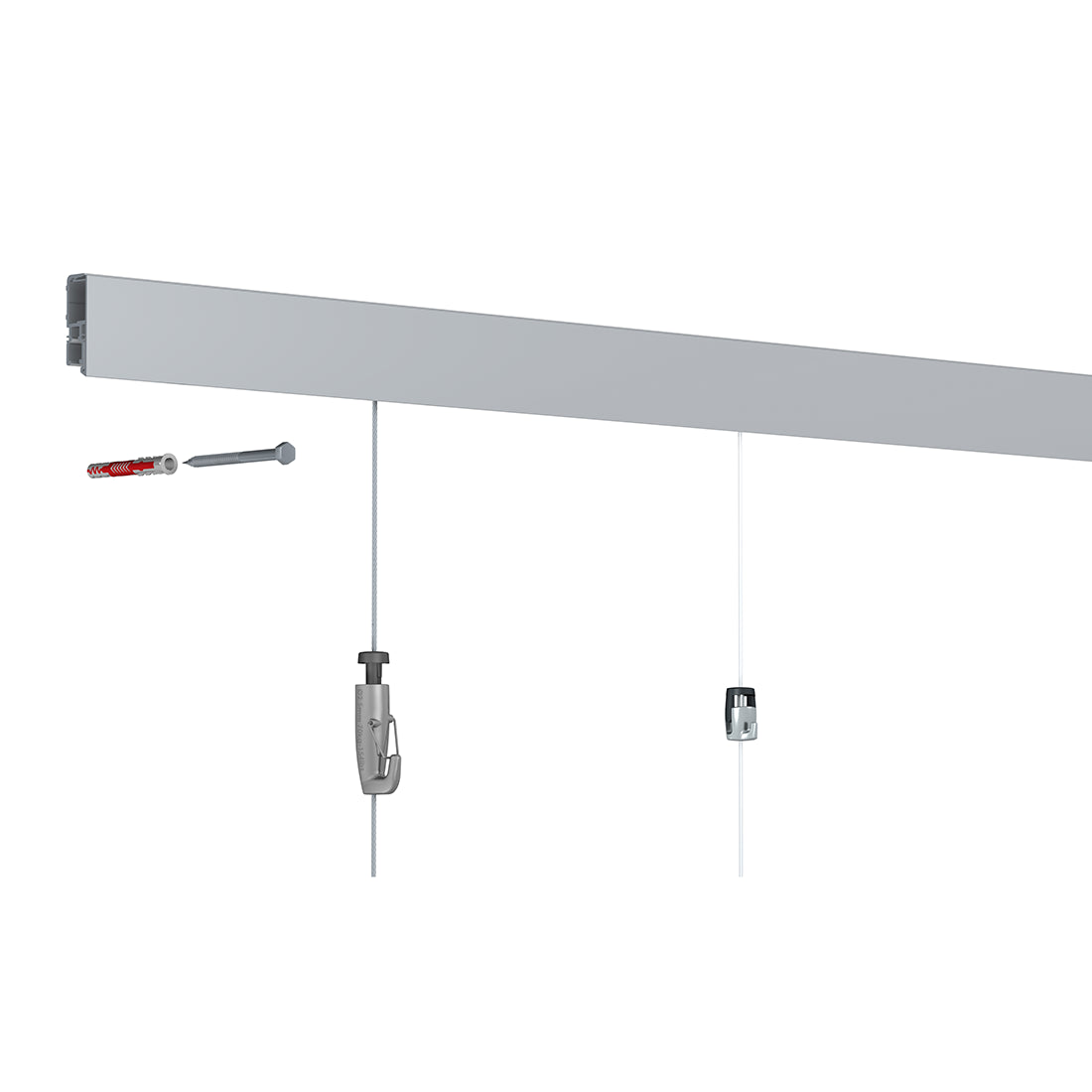 Indien tijdens een expositie of in een museum ook kleinere kunstwerken aan de Newly R70 Rail opgehangen moeten worden kan dat. Groot voordeel van deze robuuste rail is dat zowel de zware dikkere ophangdraden van 2,5 mm als de lichtere ophangdraden van 2 mm erin gebruikt kunnen worden.