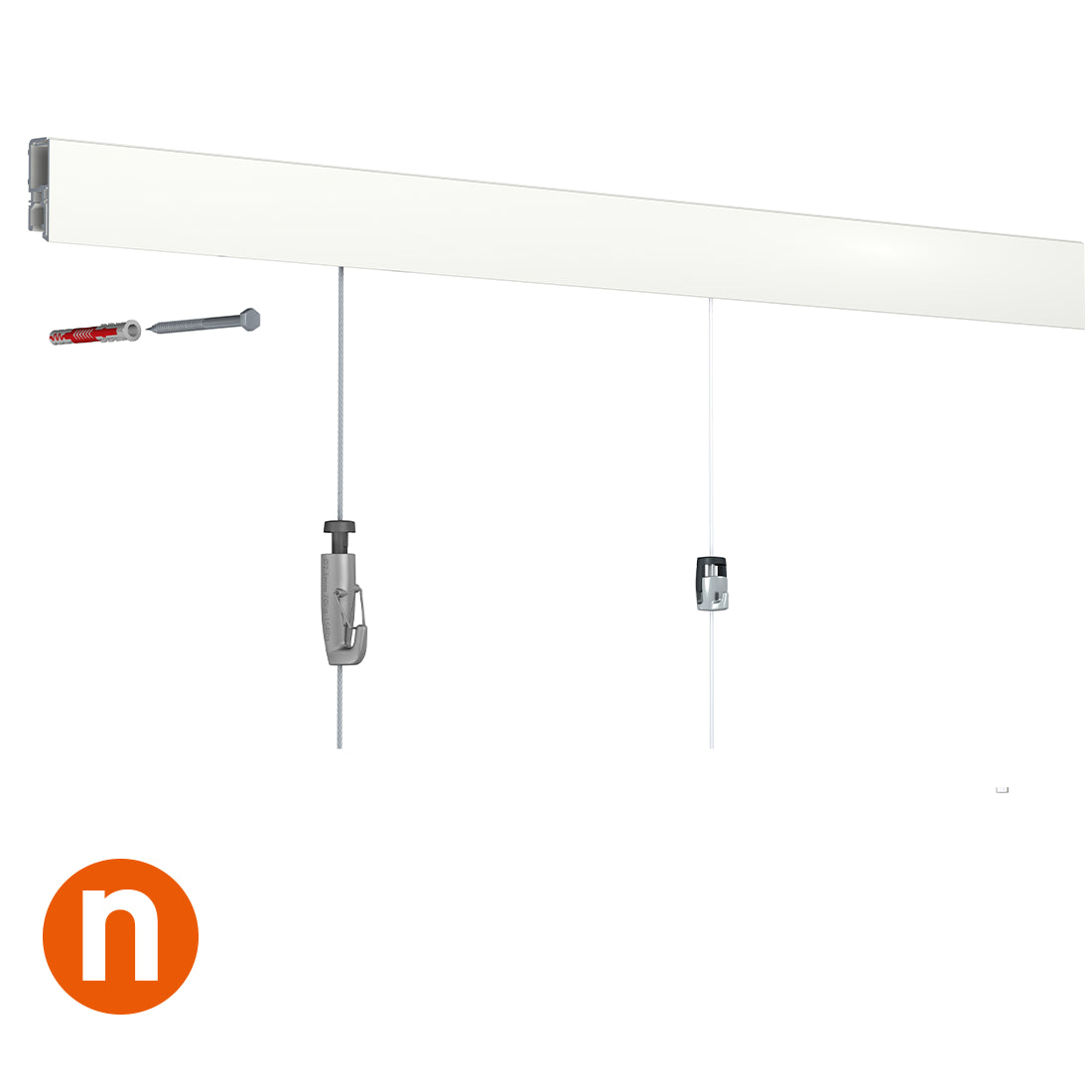 Professionele schilderijrail met een draagkracht van 100 kg per meter.