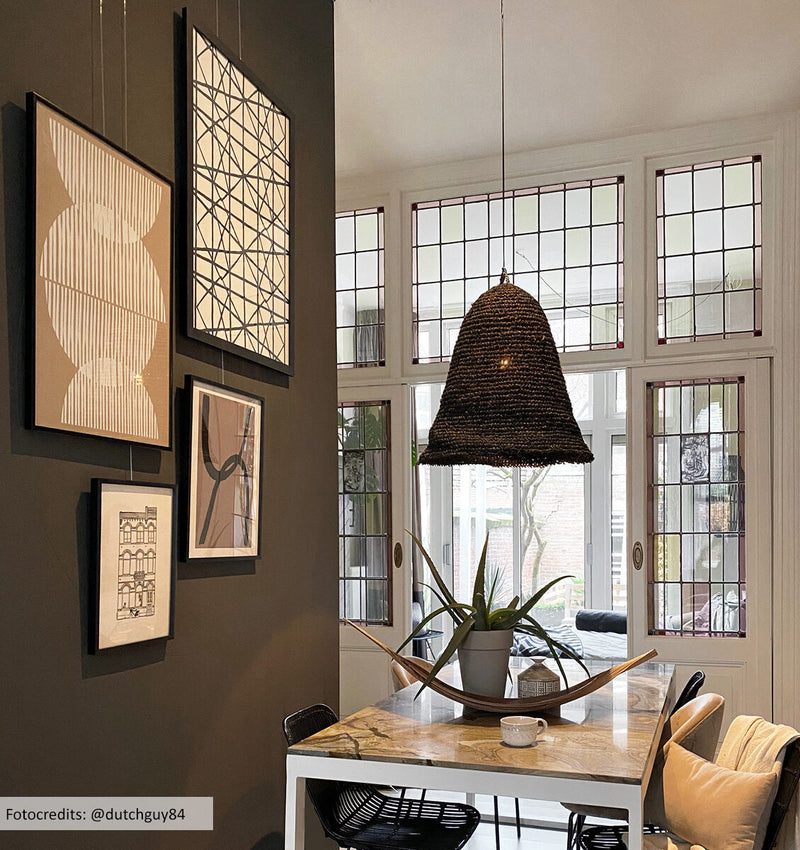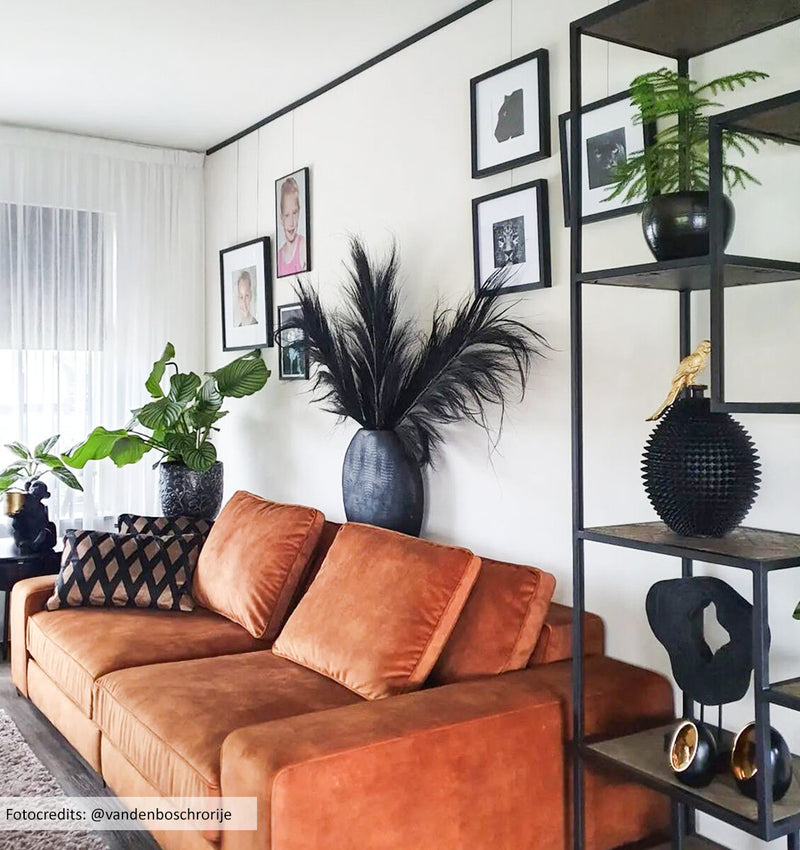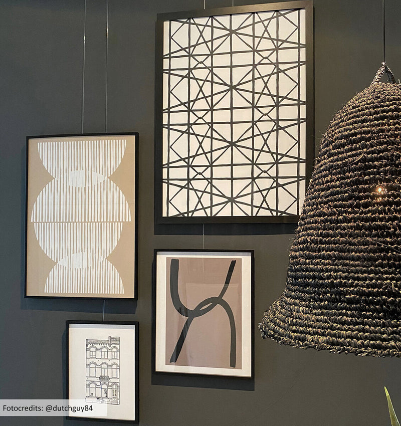 Ein auffälliger Wohntrend ist die Farbe Schwarz im Interieur, ein Trend, der schon eine Weile besteht und immer noch beliebt ist! Schwarz ist eine entscheidende und mutige Farbe, die deinem Interieur etwas Pepp verleiht. Einerseits kann Schwarz eine sehr dominante Farbe sein, andererseits kann es auch eine sehr bescheidene Farbe sein. Das hängt davon ab, wie du die Farbe in deinem Interieur kombinierst. Denke bei diesem Trend nicht nur daran, die Farbe Schwarz mit Möbeln, Böden oder Fensterdekorationen zu kombinieren, sondern denke auch an deine Wanddekorationen!