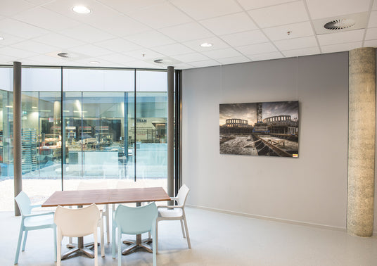 Kunst fürs Büro bietet mehr als nur ein schönes Bild. Sie steigert die Produktivität, regt die Kreativität an und verbessert das allgemeine Wohlbefinden der Mitarbeiter. Ein Gemälde fürs Büro kann ein Kunstwerk sein, das zur Atmosphäre beiträgt. Ein Bürogemälde oder eine Gemäldeserie kann die Geschichte einer Organisation oder ihres Arbeitsfeldes erzählen und so zu ihrer Identität beitragen. Artiteq bietet verschiedene Aufhängesysteme für Gemälde im Büro an: