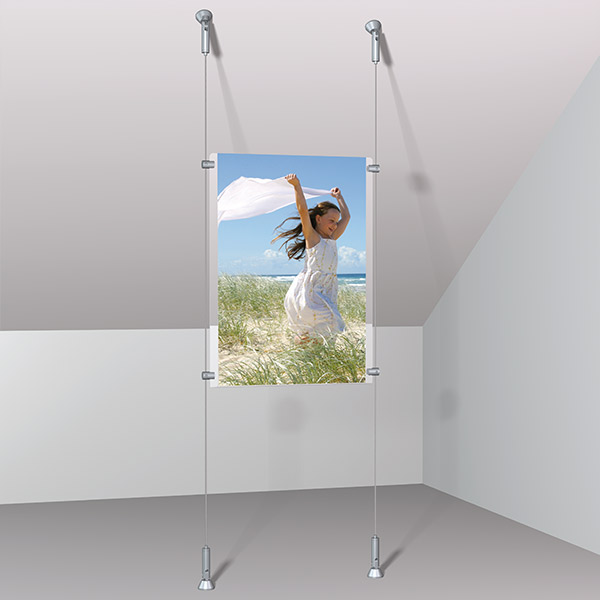 The Display It Flex version is used in combination with a hanging rail and stainless steel rods that are easy to reposition along the rail.